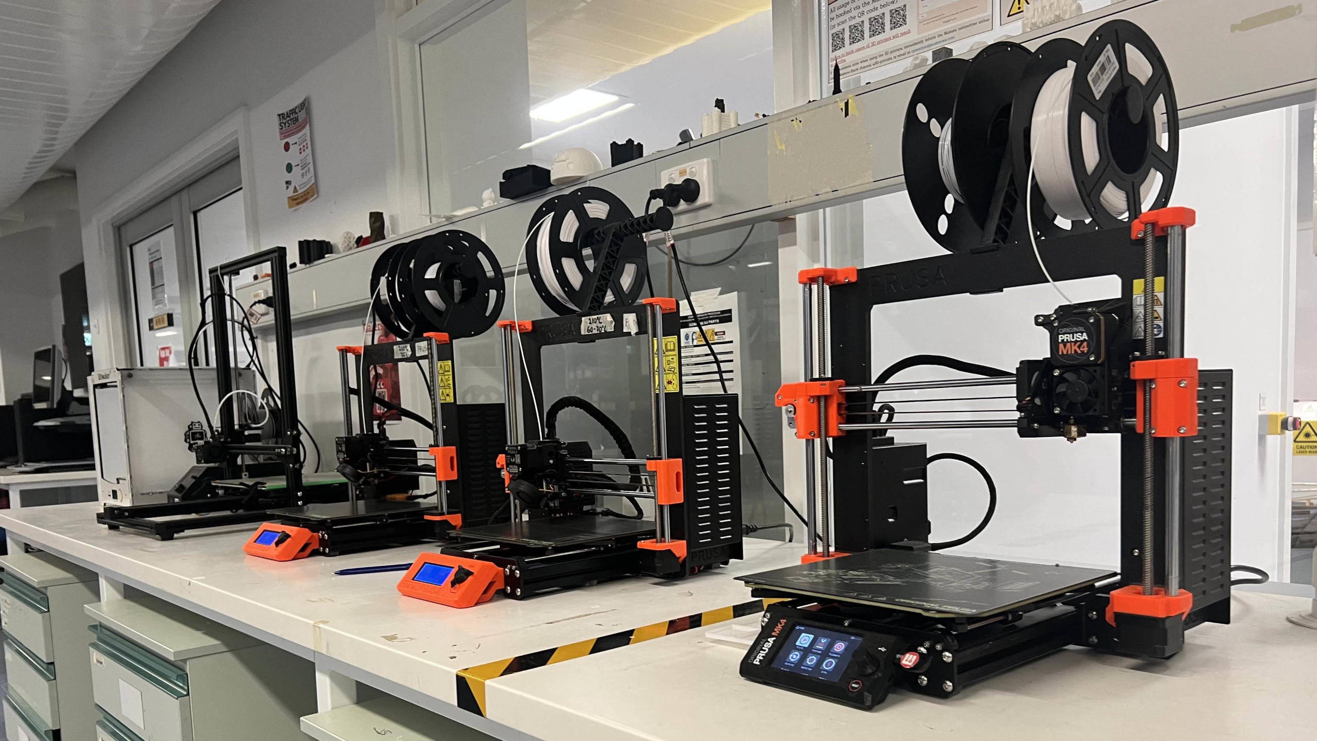 Makers is equipped with a variety of 3D printers, perfect for prototyping or building projects for your units. Our lineup includes a Prusa MK4 and two Prusa MK3S printers.